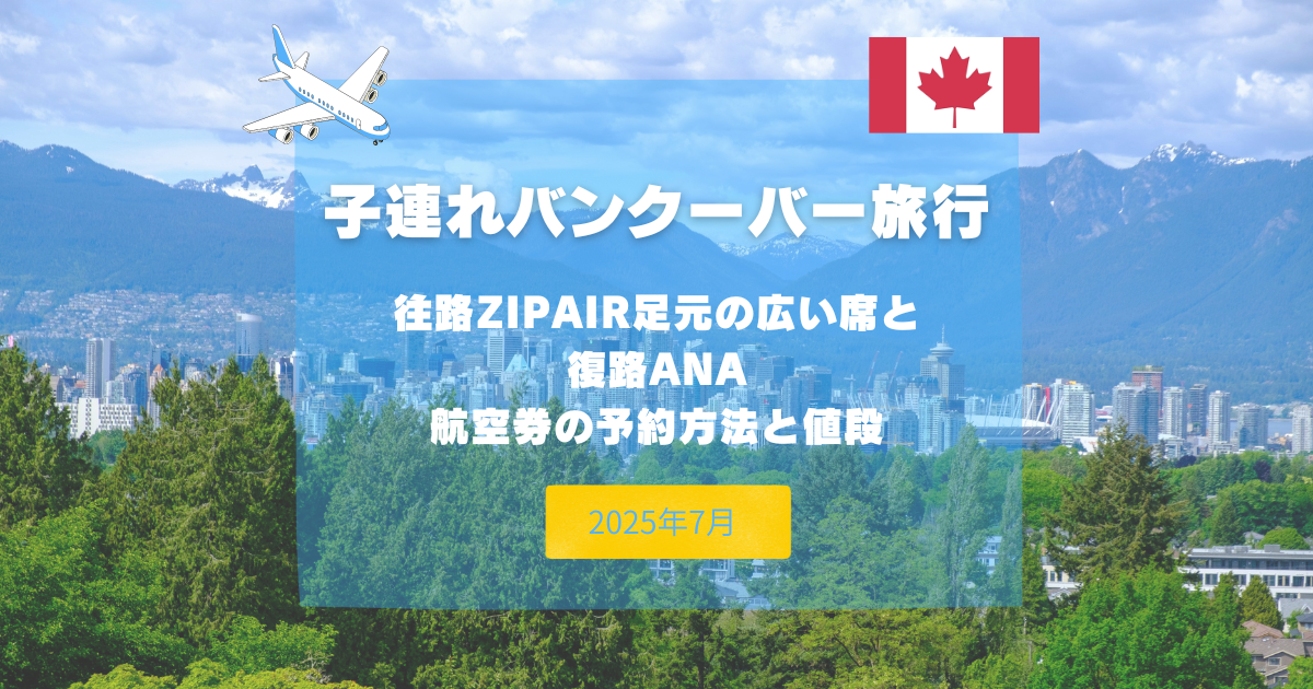 子連れバンクーバー旅行|往路ZIPAIR足元広い席と復路ANA航空券の予約方法と値段